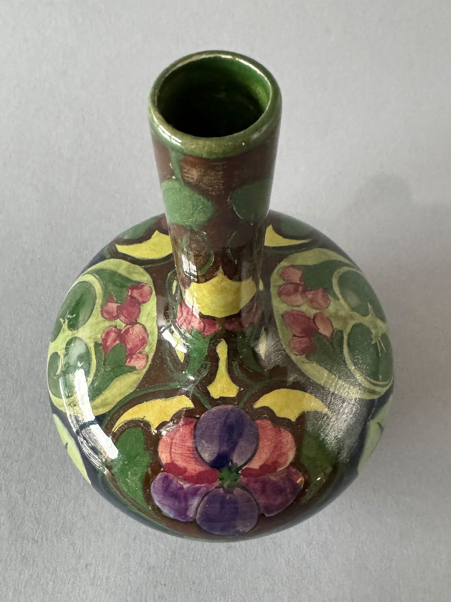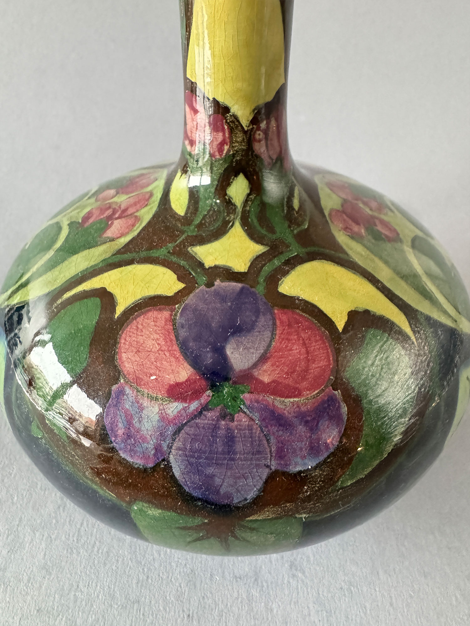 Gouda pottery vase, model 157, 17.5 cm high with early Gouda decor, painted by Piet Woerlee, period 1900-1907.