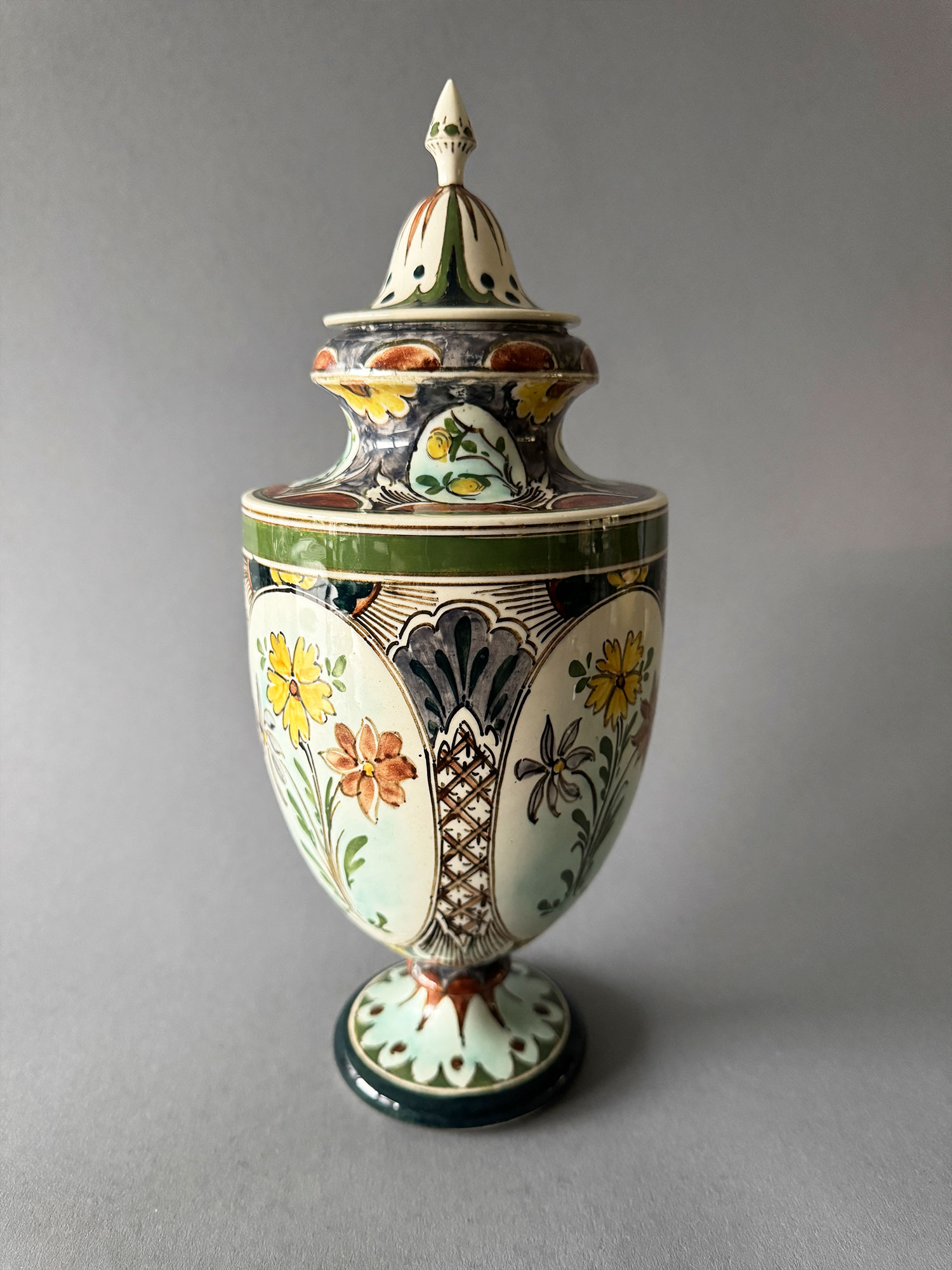 Rozenburg urn-shaped vase with lid, model 242 with floral decoration from 1894