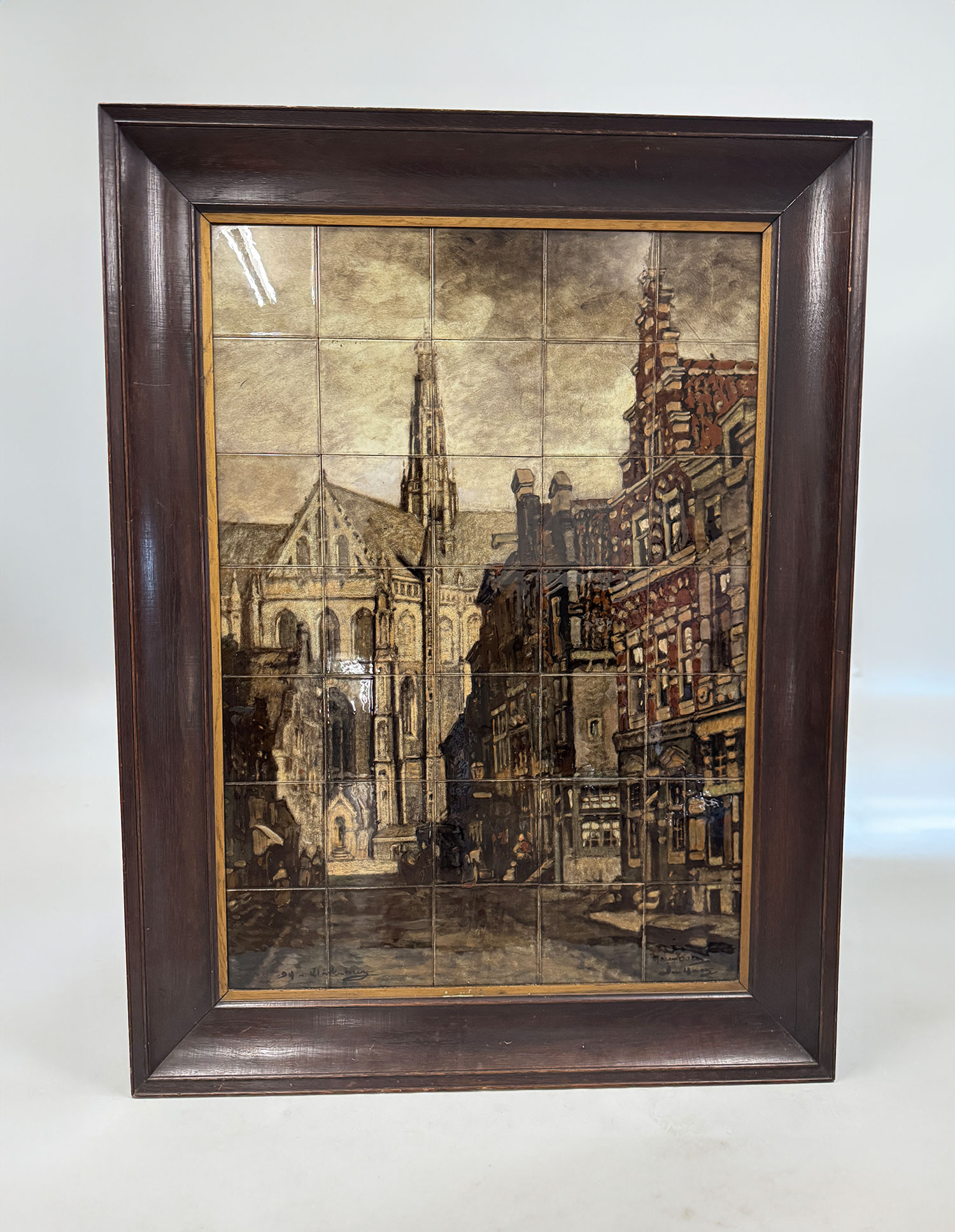 Rozenburg tile tableau, depicting Haarlem after Klinkenberg, painted by Daniel Harkink